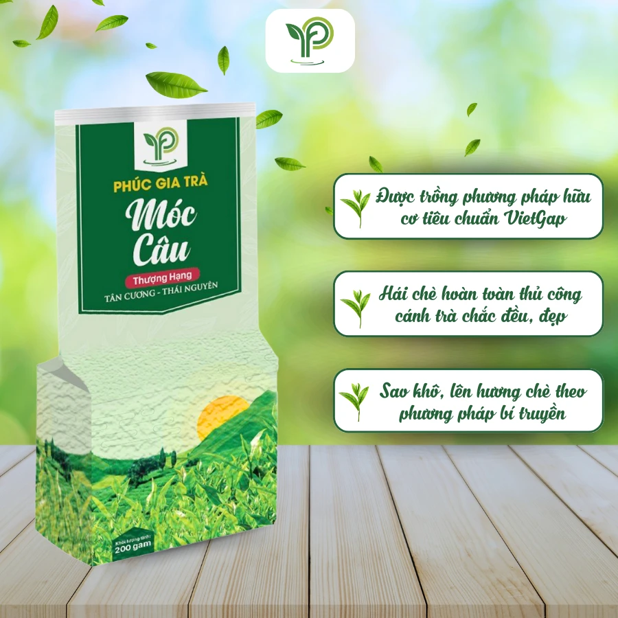 Trà Móc Câu Phúc Gia Thượng Hạng là dòng trà xanh cao cấp được tuyển chọn từ những búp trà non tại vùng Tân Cương – Thái Nguyên. Với kỹ thuật hái thủ công và chế biến truyền thống, trà giữ nguyên được hương thơm cốm non đặc trưng và vị chát dịu ban đầu, để lại hậu ngọt lâu dài khi thưởng thức.